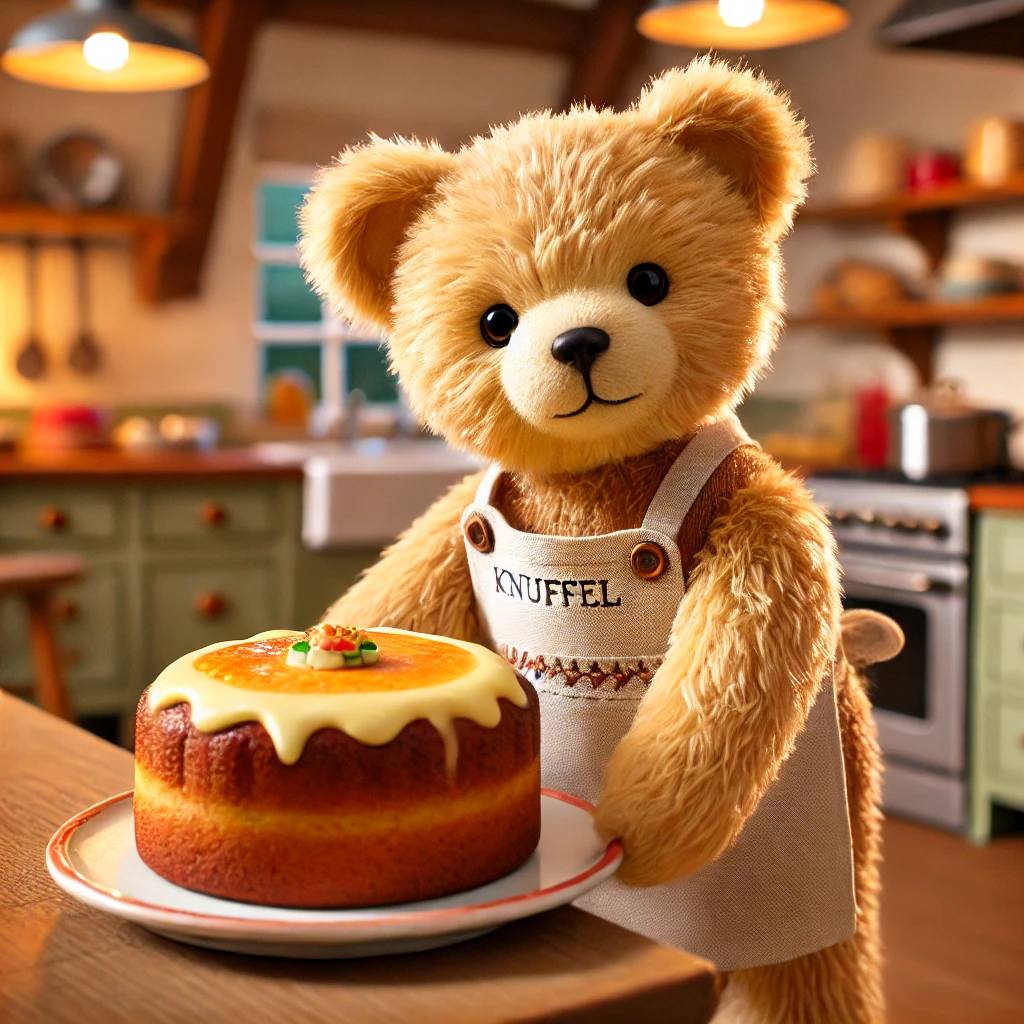 Knuffel stond in de keuken, klaar om een heerlijke cake te bakken. Hij hield van koken, vooral van zoete lekkernijen. Vandaag had hij zin in een zachte, luchtige vanillecake.
